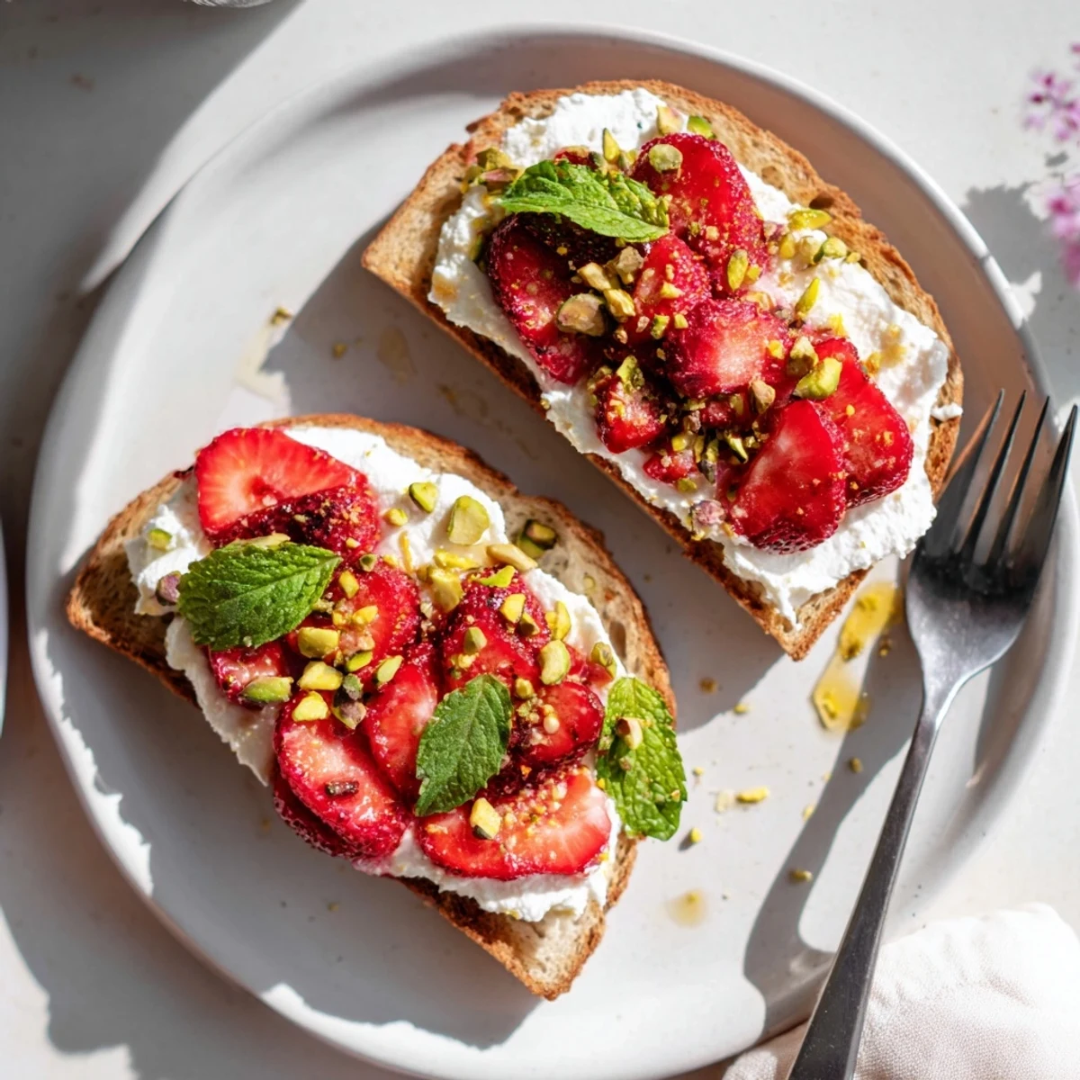 This elegant toast combines silky whipped ricotta brightened with lemon zest against tender, honey-glazed strawberries roasted until deeply caramelized. The contrast of cool creamy cheese against warm fruit juices creates instant restaurant-quality brunch in just 30 minutes.
